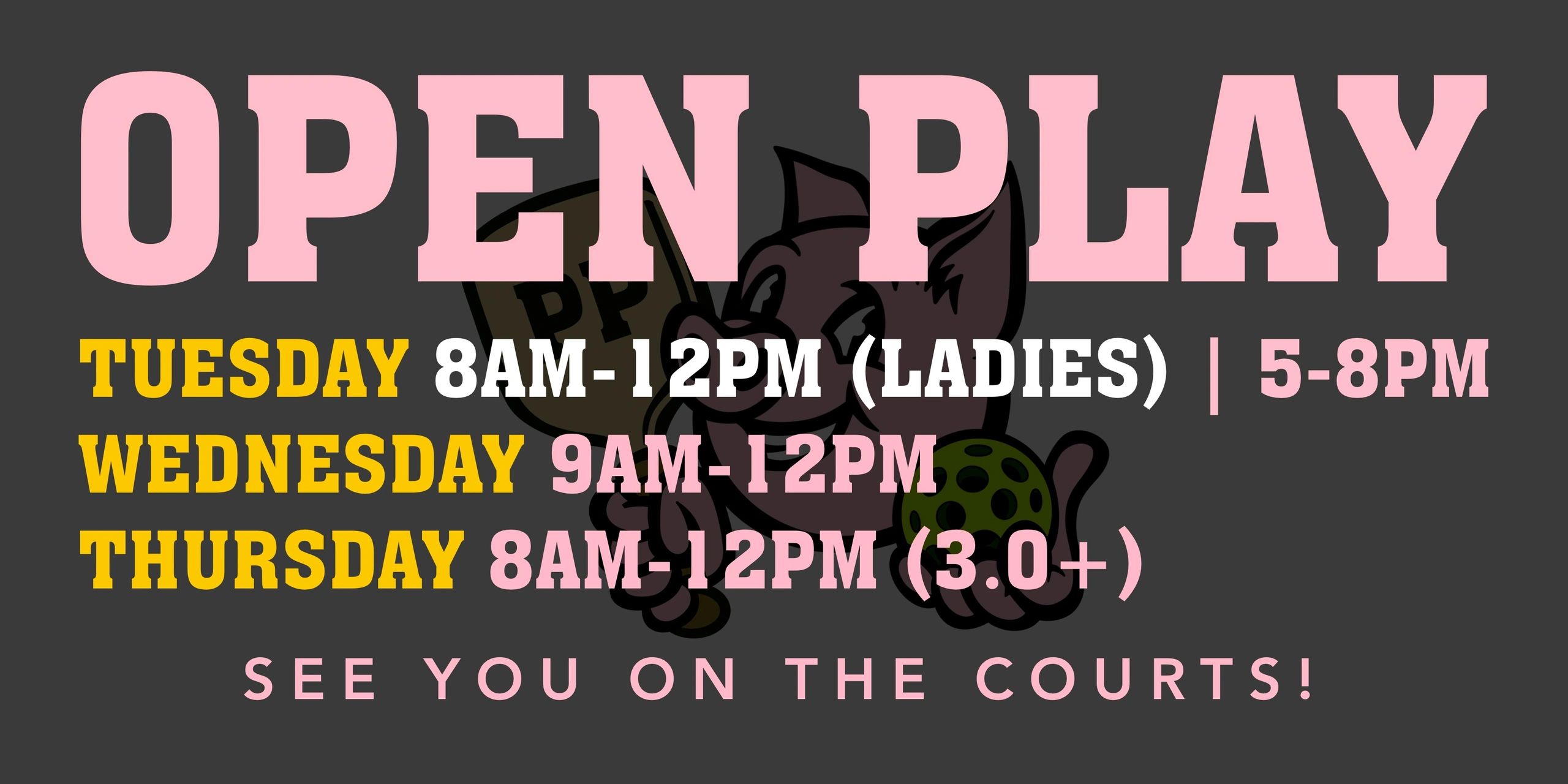 Join our scheduled open play on Wednesday's from 9am-12pm!